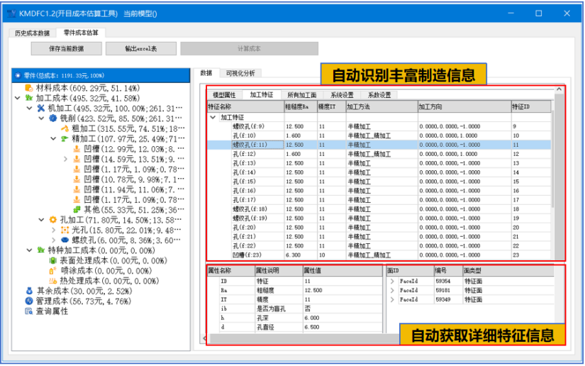 • 可以精細(xì)至特征面類型的成本評(píng)估分析