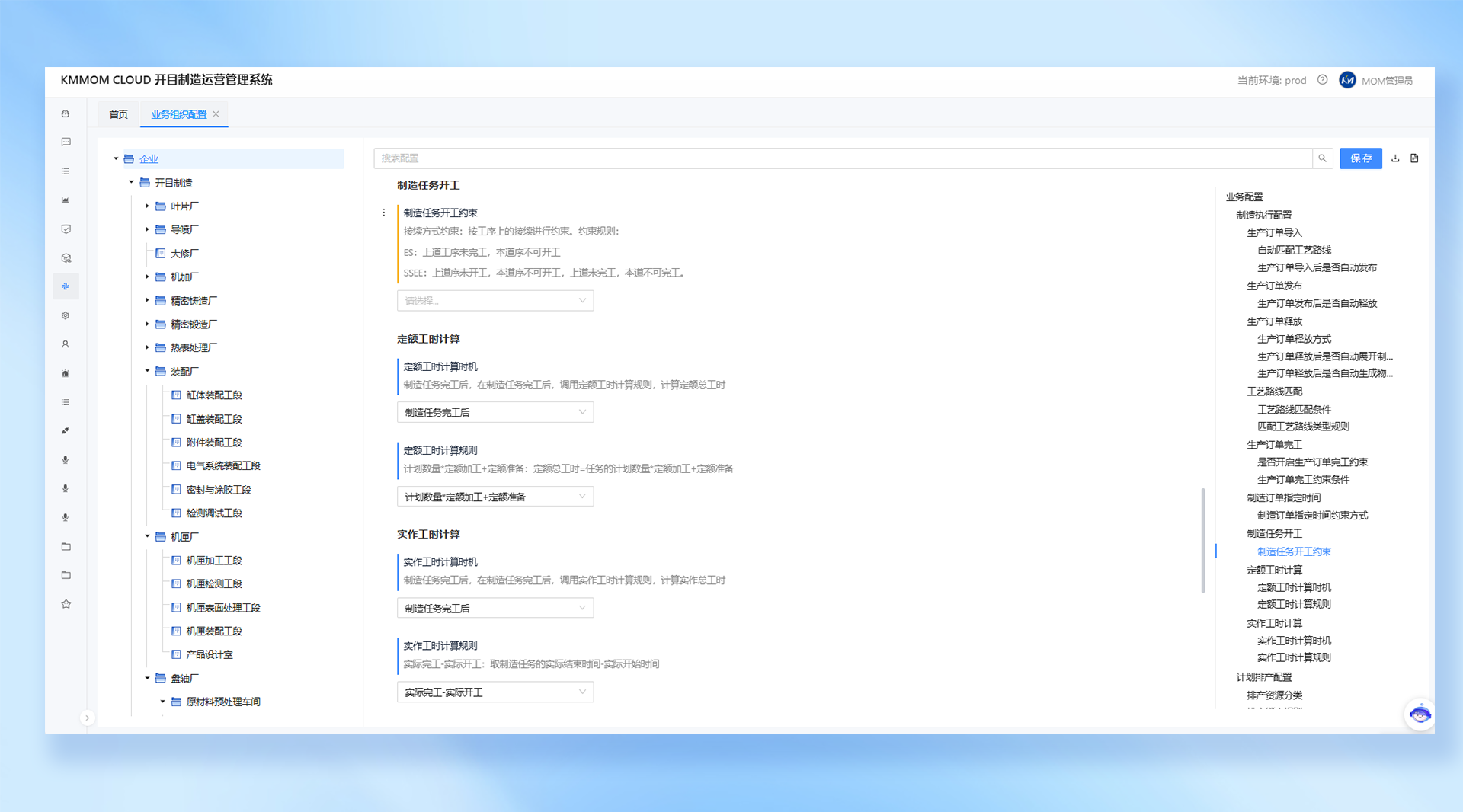 目前,KMMOM CLOUD V3.0已在某高端裝備制造企業(yè)成功落地實(shí)施,實(shí)現(xiàn)了從頂層ERP系統(tǒng)(園區(qū)網(wǎng))到底層產(chǎn)線系統(tǒng)(工控網(wǎng))的無縫連接,確保了系統(tǒng)的互聯(lián)互通;同時(shí),CAPP、ERP、MOM等關(guān)鍵系統(tǒng)也完成了國產(chǎn)化替代和重構(gòu)。該系統(tǒng)實(shí)現(xiàn)了制造業(yè)務(wù)域模型的規(guī)范化,涵蓋了物料、BOM、工藝、工裝、設(shè)備、計(jì)劃、轉(zhuǎn)工、工卡、工時(shí)、維修大綱等多個(gè)方面,覆蓋了從零件毛坯制造、熱處理、零件加工到發(fā)動機(jī)修理裝配等多個(gè)專業(yè)領(lǐng)域和多個(gè)工廠的生產(chǎn)管理及協(xié)同工作,實(shí)現(xiàn)了從企業(yè)級計(jì)劃能力分析到工序級任務(wù)調(diào)度管理的自制全流程管控。
