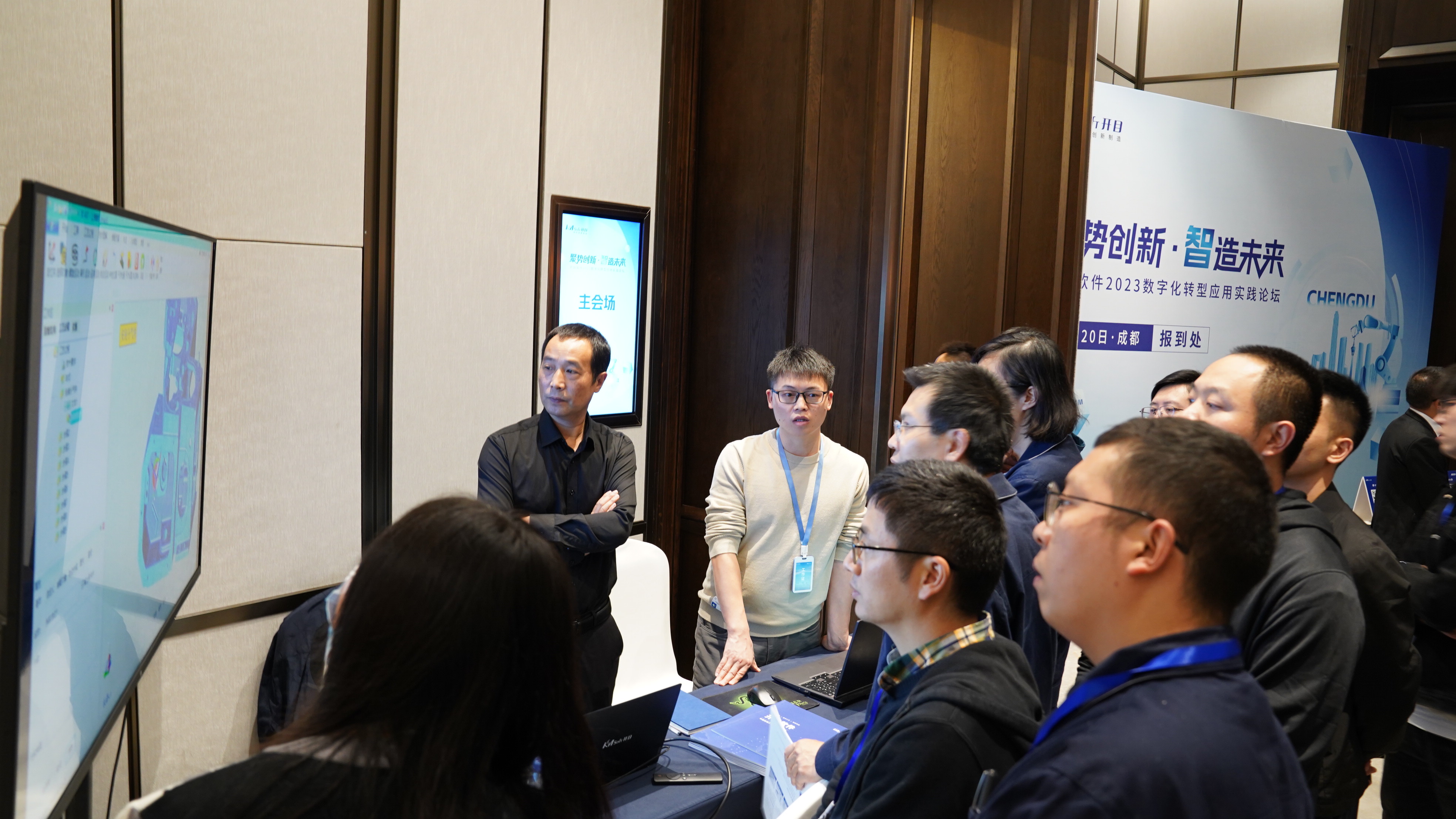 在會場外展示區(qū),開目軟件全面展示了自主研發(fā)的PLM、MPM、MOM等一系列覆蓋設(shè)計、工藝、制造環(huán)節(jié)的一體化智能制造解決方案以及以3DAST、3DMPS、3DDFM為代表的國內(nèi)領(lǐng)先的智能工藝工具產(chǎn)品,開目豐富的產(chǎn)品線以及精湛的軟件開發(fā)技術(shù),吸引了眾多嘉賓交流探討,并表現(xiàn)出極大的認(rèn)可。