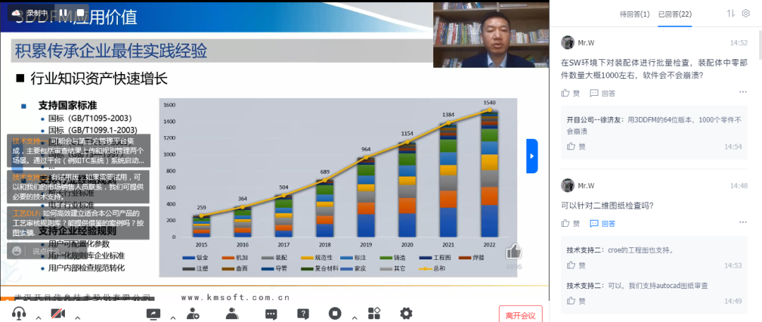 3DDFM是怎樣融入超越科技現(xiàn)有的產(chǎn)品設(shè)計(jì)流程或工藝審查流程中的?超越科技如何利用3DDFM做干涉檢查?3DDFM支持哪些專(zhuān)業(yè)的工藝審查?3DDFM中有哪些內(nèi)容用戶(hù)可以定制和擴(kuò)展?在專(zhuān)家連線(xiàn)研討環(huán)節(jié),參會(huì)觀眾紛紛連線(xiàn)提問(wèn),與專(zhuān)家們聚焦智能三維工藝審查,圍繞企業(yè)如何在早期階段實(shí)現(xiàn)可制造性分析,進(jìn)行深入研討。專(zhuān)家們富有建設(shè)性的創(chuàng)見(jiàn)贏得了在線(xiàn)觀眾的一片喝彩,也為企業(yè)數(shù)字化轉(zhuǎn)型提供了新思維、新方法。