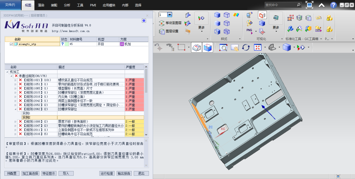 3DDFM基于完全自主核心技術(shù),內(nèi)嵌于三維CAD中,可根據(jù)審查規(guī)則對產(chǎn)品設(shè)計模型進(jìn)行檢查和分析,輔助設(shè)計、工藝、制造工程師在產(chǎn)品設(shè)計階段檢查設(shè)計的可制造性,提前發(fā)現(xiàn)并修改設(shè)計缺陷,減少工藝性評審時間以及設(shè)計返工次數(shù),提高產(chǎn)品質(zhì)量,縮短研制周期。此次線上探討會,專家們將為您全面解讀開目可制造性分析系統(tǒng)(3DDFM)的核心功能與產(chǎn)品優(yōu)勢。