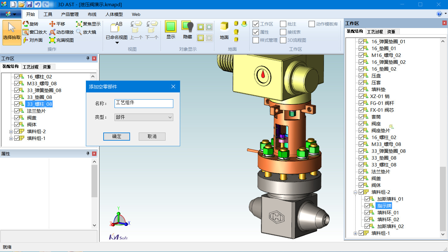 三維裝配工藝設計與系統(tǒng)可根據(jù)產(chǎn)品結(jié)構(gòu)的層次關(guān)系,通過人機交互的方式,在裝配步驟規(guī)劃前進行裝配結(jié)構(gòu)調(diào)整以滿足產(chǎn)品裝配工藝性要求,包括添加工藝合件等,可根據(jù)裝配特點定義的裝配結(jié)構(gòu)樹,以裝配關(guān)聯(lián)矩陣的形式進行存儲,實現(xiàn)結(jié)構(gòu)化工藝管理,操作直觀、便捷。
