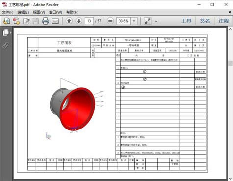 隨著三維CAD、可視化技術(shù)在制造業(yè)企業(yè)的推廣應(yīng)用,工藝設(shè)計(jì)手段也逐步地從二維工藝向三維工藝進(jìn)行轉(zhuǎn)變,因此許多企業(yè)也逐步應(yīng)用了3D PDF(圖10),將三維模型輸出至3D PDF 格式的工藝卡片中,使用三維模型替代原有二維工程圖。