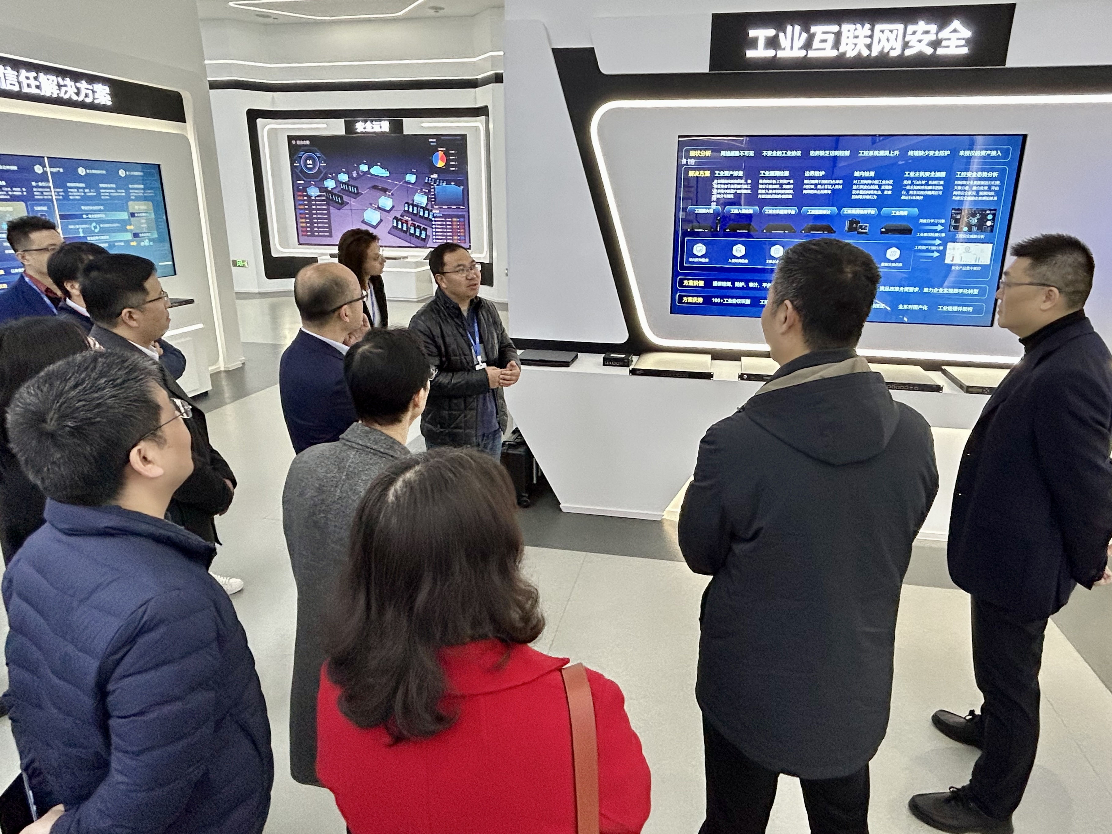 交流學(xué)習(xí)伊始,在迪普科技相關(guān)領(lǐng)導(dǎo)帶領(lǐng)下,開(kāi)目訪問(wèn)團(tuán)隊(duì)參觀了企業(yè)展廳,全面細(xì)致的了解了迪普的業(yè)務(wù)概況。