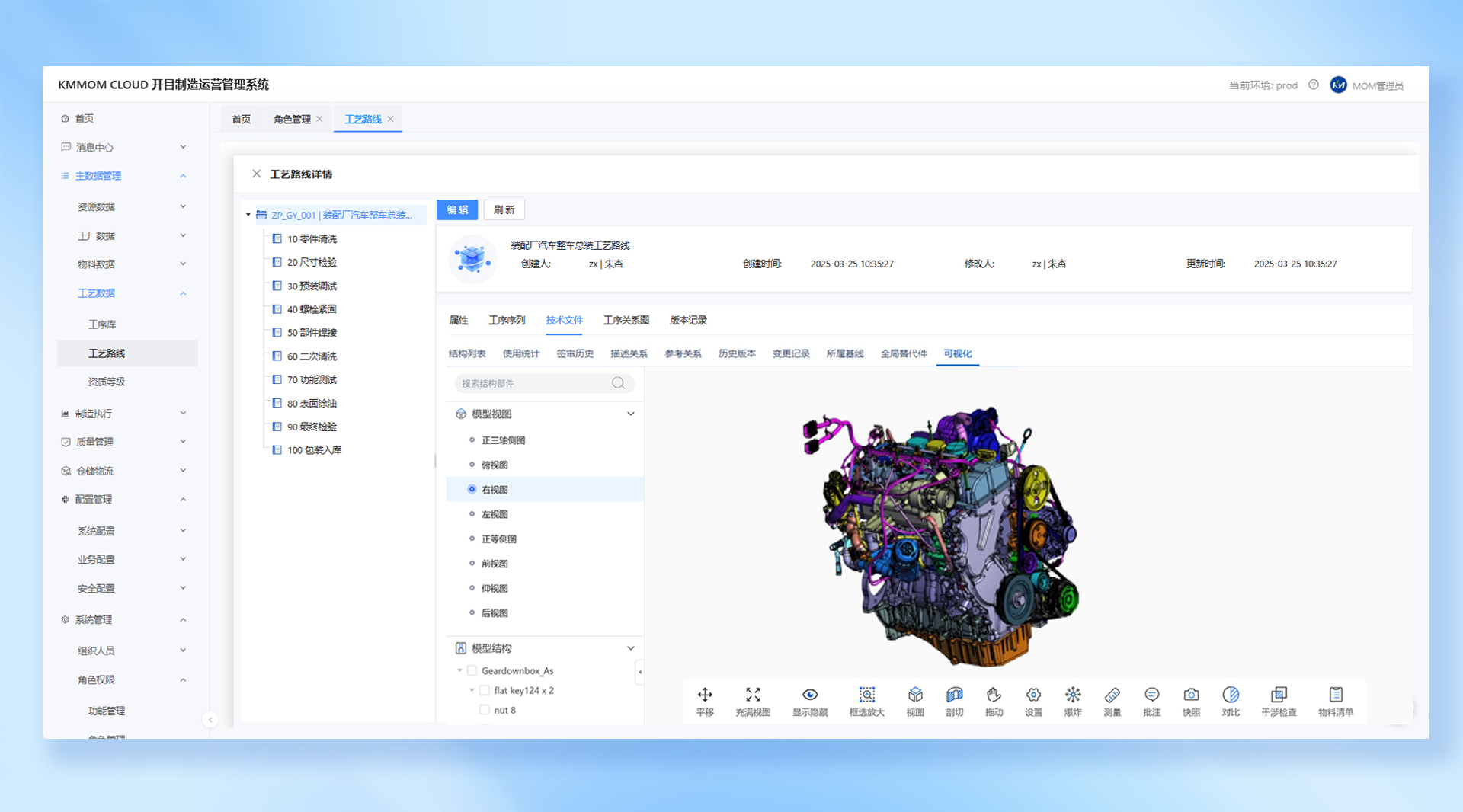 圖:開目自研APS高級排程引擎? 設(shè)計(jì)工藝制造一體化,打造管理“零時(shí)差”在精密鑄造環(huán)節(jié),工藝參數(shù)的誤差可能導(dǎo)致整批報(bào)廢;在高鐵轉(zhuǎn)向架裝配環(huán)節(jié),設(shè)計(jì)變更若無法實(shí)時(shí)同步車間,將引發(fā)數(shù)千萬損失……傳統(tǒng)MOM系統(tǒng)雖覆蓋生產(chǎn)執(zhí)行,卻難以打通工藝設(shè)計(jì)到車間執(zhí)行的“最后一公里”。作為工藝軟件專家,KMMOM CLOUD V3.0打造“產(chǎn)品設(shè)計(jì)-三維工藝-制造”數(shù)據(jù)流無縫銜接技術(shù),將設(shè)計(jì)、工藝和制造管理的數(shù)據(jù)源有機(jī)整合,通過數(shù)據(jù)的無縫流動和共享,企業(yè)可以實(shí)現(xiàn)從產(chǎn)品設(shè)計(jì)到生產(chǎn)交付的全流程管理,打造設(shè)計(jì)到制造的“零時(shí)差”。同時(shí),開目工藝智能體可以通過對生產(chǎn)數(shù)據(jù)和工藝參數(shù)的分析,幫助企業(yè)發(fā)現(xiàn)潛在的工藝改進(jìn)機(jī)會,推薦新的工藝方案,提高產(chǎn)品質(zhì)量和生產(chǎn)效率。? 多組織、多工廠管理,從“單廠孤島”到“集團(tuán)化管控”基于“KMCLOUD統(tǒng)一數(shù)字基座”,KMMOM CLOUD V3.0構(gòu)建了多組織、多工廠的運(yùn)營管理體系,支持集團(tuán)企業(yè)在統(tǒng)一平臺下實(shí)現(xiàn)多工廠、多專業(yè)的系統(tǒng)應(yīng)用。通過分層業(yè)務(wù)邏輯管理,實(shí)現(xiàn)各車間應(yīng)用界面?zhèn)€性化定制、業(yè)務(wù)數(shù)據(jù)分權(quán)隔離,降低系統(tǒng)集成復(fù)雜度,提升系統(tǒng)維護(hù)效率。同時(shí),基于分布式數(shù)據(jù)庫實(shí)現(xiàn)歷史數(shù)據(jù)自動歸檔與實(shí)時(shí)業(yè)務(wù)數(shù)據(jù)動態(tài)遷移,構(gòu)建彈性擴(kuò)展框架,利用分布式部署技術(shù),滿足企業(yè)多組織、多工廠的規(guī)?;瘮U(kuò)展。通過云端平臺,KMMOM可集中監(jiān)控各工廠的生產(chǎn)進(jìn)度、質(zhì)量指標(biāo)及設(shè)備、庫存狀態(tài)等,實(shí)現(xiàn)訂單多組織、多工廠自動分配與動態(tài)產(chǎn)能協(xié)同。? 智能報(bào)表動態(tài)生成,打造企業(yè)決策“大腦”結(jié)合開目AI小沐以及自研的KMCube智能看板編輯器的數(shù)據(jù)處理能力,KMMOM CLOUD V3.0系統(tǒng)支持主流國產(chǎn)數(shù)據(jù)庫,可通過自然語言交互理解用戶的查詢意圖、快速輸出數(shù)據(jù)結(jié)果,并以可視化圖表的形式直觀展示給用戶。同時(shí),企業(yè)可以基于AI低代碼平臺,根據(jù)不同業(yè)務(wù)場景自定義打造專屬云端監(jiān)控大屏,實(shí)時(shí)采集和分析?產(chǎn)過程中的關(guān)鍵數(shù)據(jù),如任務(wù)完成情況、設(shè)備運(yùn)?狀態(tài)、物料供應(yīng)情況等,并通過AI進(jìn)行智能分析及時(shí)給出評估建議,為企業(yè)管理者動態(tài)決策提供強(qiáng)大支撐。? 兩網(wǎng)融合,確保生產(chǎn)數(shù)據(jù)安全流轉(zhuǎn) 高端制造企業(yè)生產(chǎn)車間數(shù)據(jù)安全至關(guān)重要。當(dāng)前,企業(yè)多通過物理方式將內(nèi)部網(wǎng)絡(luò)與工控網(wǎng)絡(luò)的數(shù)據(jù)進(jìn)行隔離,因此訂單數(shù)據(jù)、工藝路線、產(chǎn)品BOM、生產(chǎn)數(shù)據(jù)、外協(xié)進(jìn)度、設(shè)備生產(chǎn)線互聯(lián)等數(shù)據(jù)需要經(jīng)過復(fù)雜的流程進(jìn)行中轉(zhuǎn),數(shù)據(jù)流轉(zhuǎn)效率極低且容易丟失。在KMMOM CLOUD V3.0中,建立了從數(shù)據(jù)脫密、打包、審核、傳遞、解析、回收的全鏈路跟蹤監(jiān)控機(jī)制、系統(tǒng)化解決兩網(wǎng)的脫密、丟失等重難點(diǎn)問題。圖:開目MOM兩網(wǎng)融合確保生產(chǎn)數(shù)據(jù)安全