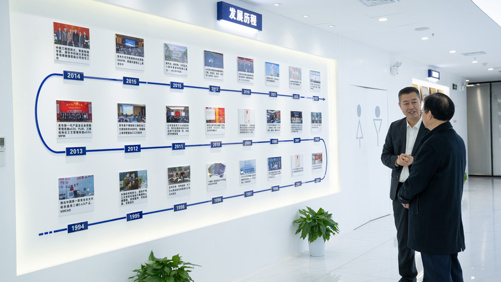 寧靜波總經(jīng)理帶領(lǐng)調(diào)研組一行參觀了公司展廳,并詳細(xì)介紹了開目的發(fā)展歷程、產(chǎn)品創(chuàng)新、科研攻關(guān)、產(chǎn)業(yè)布局以及未來規(guī)劃。寧總提到,開目軟件專注工業(yè)軟件自主創(chuàng)新三十余年,潛心鉆研工業(yè)軟件核心技術(shù),現(xiàn)已研發(fā)了 PLM、MPM、MOM 以及 3DDFM、3DMPS、3DAST、KMVue等20多款工業(yè)軟件領(lǐng)先產(chǎn)品,并在航空、航天、航發(fā)、船舶、重工機械等諸多高端裝備制造企業(yè)成功應(yīng)用,幫助企業(yè)實現(xiàn)數(shù)字化轉(zhuǎn)型及國產(chǎn)化替代,高端客戶市場占有率在國產(chǎn)工業(yè)軟件中名列前茅。