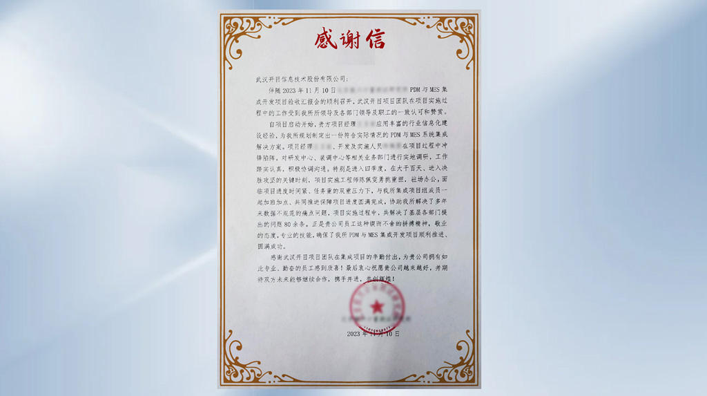 近期,在航天科工集團(tuán)某研究所的 PDM與MES集成開(kāi)發(fā)項(xiàng)目中,開(kāi)目技術(shù)運(yùn)維團(tuán)隊(duì)在面臨項(xiàng)目進(jìn)入決勝攻堅(jiān)戰(zhàn)的關(guān)鍵時(shí)刻,頂住壓力,勇挑重?fù)?dān),為客戶解決了多年來(lái)數(shù)據(jù)不規(guī)范的痛點(diǎn)問(wèn)題以及其它部門提出的80多項(xiàng)關(guān)鍵問(wèn)題,確保了項(xiàng)目的圓滿完成。運(yùn)維團(tuán)隊(duì)的專業(yè)性和責(zé)任心,獲得了客戶高度肯定和贊揚(yáng)。