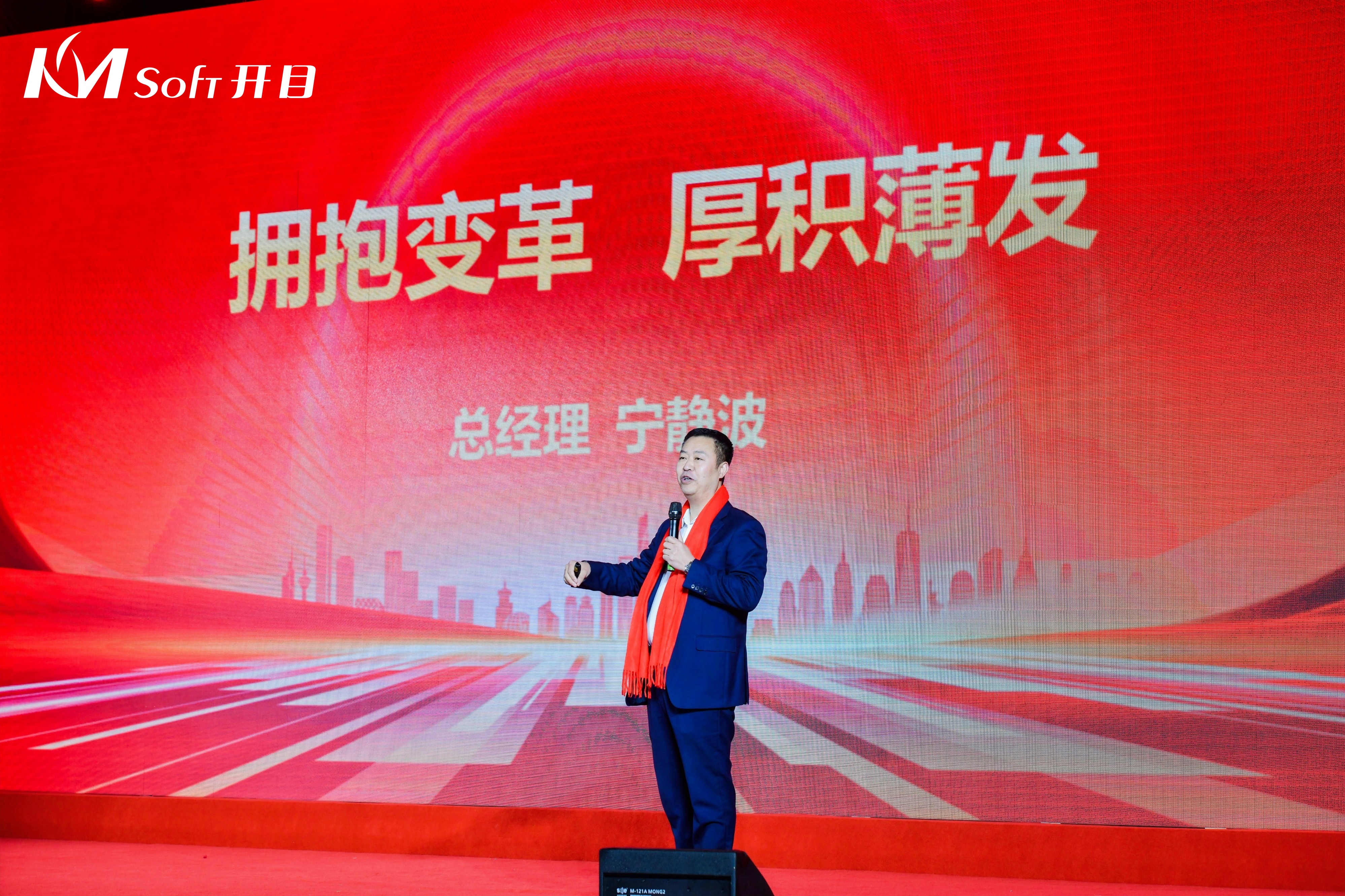 年會伊始,總經(jīng)理寧靜波發(fā)表《擁抱變革,厚積薄發(fā)》主題致辭。寧總向全體員工及家屬、合作伙伴及關心支持開目發(fā)展的社會各界朋友,致以最真誠的感謝和最衷心的祝福,并從市場定位、產(chǎn)品創(chuàng)新、業(yè)務開拓、項目交付、運維服務、團隊管理等方面做出了規(guī)劃,希望開目人新的一年在挑戰(zhàn)中擁抱變革,在機遇中再攀高峰,邁入高質量發(fā)展新階段。