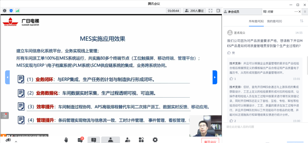 四機(jī)塞瓦產(chǎn)品結(jié)構(gòu)復(fù)雜、個(gè)性化要求高,甚至件的產(chǎn)品生產(chǎn)交付模式,企業(yè)如何保障生產(chǎn)的合理交付?廣日電梯作為特種行業(yè)設(shè)備是如何合理安排生產(chǎn)計(jì)劃的?MES系統(tǒng)與工藝端的一體化應(yīng)用主要體現(xiàn)在哪些方面?對(duì)于生產(chǎn)過(guò)程中的BOM變更,工藝變更開(kāi)目MES系統(tǒng)是如何處理的?在活動(dòng)直播間,參會(huì)觀眾踴躍互動(dòng),點(diǎn)贊不斷,競(jìng)相評(píng)論,爭(zhēng)相與專(zhuān)家連麥互動(dòng),三位專(zhuān)家分別從企業(yè)實(shí)際情況出發(fā),為制造企業(yè)數(shù)字化轉(zhuǎn)型MES實(shí)施答疑解惑,現(xiàn)場(chǎng)思想火花激情碰撞,為系列活動(dòng)畫(huà)上圓滿(mǎn)的句號(hào)。