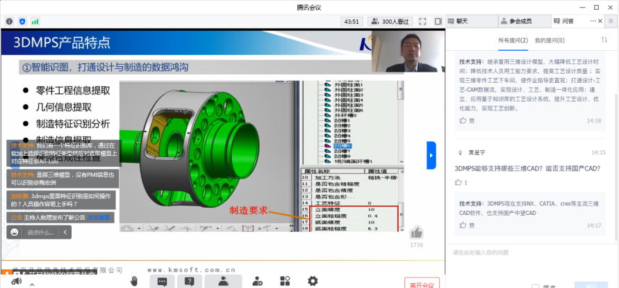 3DMPS能識(shí)別航空發(fā)動(dòng)機(jī)類(lèi)復(fù)雜零件所有制造特征嗎?航發(fā)集團(tuán)使用3DMPS 生成NC代碼嗎?與CAM 如何銜接?3DMPS可以一次性生成工序過(guò)程圖嗎?連線(xiàn)研討環(huán)節(jié),參會(huì)嘉賓踴躍互動(dòng),徐總和李湉博士?jī)A囊相授,就企業(yè)在三維環(huán)境下如何編制機(jī)加工藝,如何利用已有工藝知識(shí)通過(guò)3DMPS提升工作效率,推進(jìn)機(jī)加工藝標(biāo)準(zhǔn)化、參數(shù)化、結(jié)構(gòu)化進(jìn)程發(fā)表專(zhuān)業(yè)意見(jiàn),大家點(diǎn)贊不止。