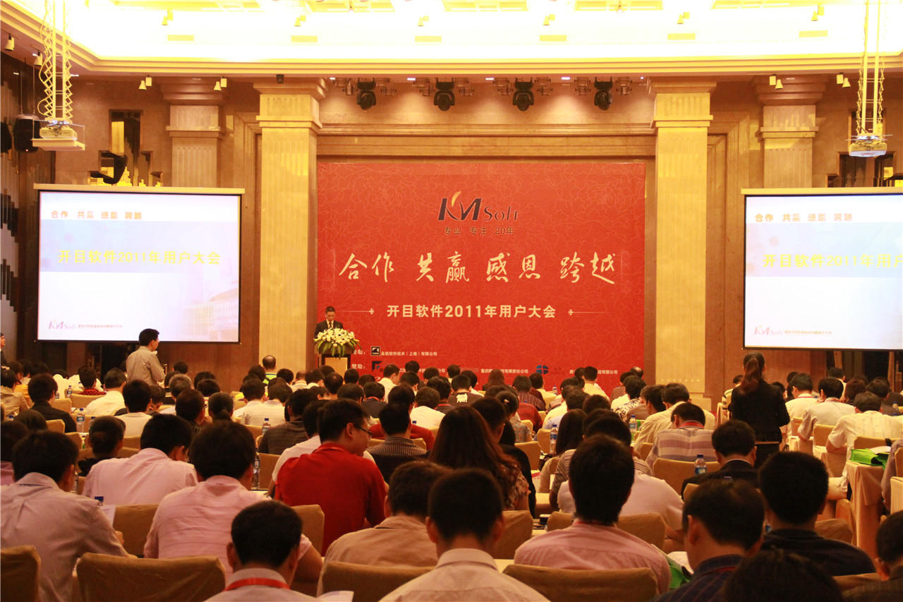 2011年5月26日,開目軟件公司以“合作?共贏?感恩?跨越”為主題的用戶大會(huì)在武漢隆重舉行。上海電氣集團(tuán)、電子科技集團(tuán)、三一集團(tuán)、沈陽(yáng)金杯、力帆實(shí)業(yè)、柳州五菱、陜重汽、山西防爆、廣日電梯等來(lái)自全國(guó)各地的300余名開目用戶代表參加了本次會(huì)議。這是開目軟件創(chuàng)立20年來(lái)首次舉辦用戶大會(huì),具有重要的里程碑意義。會(huì)上,開目公司董事長(zhǎng)陳卓寧教授發(fā)表了 “合作?共贏?感恩?跨越”的主題演講,陳董說(shuō):“開目過(guò)去的20年,是與用戶合作、共贏的20年。用戶的需求、關(guān)心和支持是開目寶貴的財(cái)富。”開目公司總經(jīng)理陳萬(wàn)領(lǐng)博士以“專業(yè)、專注、創(chuàng)新、共贏,打造中國(guó)高端工業(yè)軟件品牌”為題,表示開目在今后的發(fā)展中要“有所為,有所不為”,堅(jiān)持“專業(yè)、專注、創(chuàng)新,共贏”的經(jīng)營(yíng)理念和“創(chuàng)新、務(wù)實(shí)、進(jìn)取、協(xié)作、誠(chéng)信”的企業(yè)文化,與客戶一起共同打造中國(guó)高端工業(yè)軟件品牌,實(shí)現(xiàn)共贏。