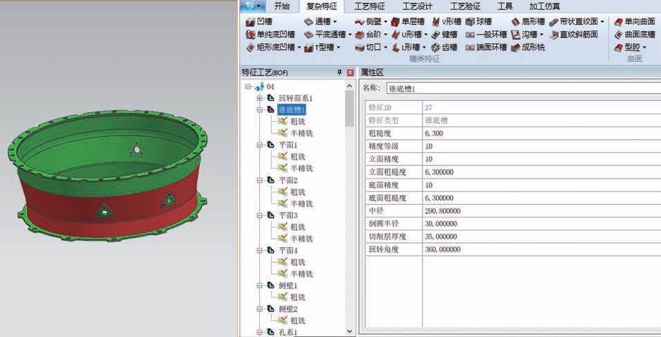 基于MBD 的三維數(shù)字化工藝在機(jī)匣產(chǎn)品中的應(yīng)用,以機(jī)匣產(chǎn)品為核心,基于MBD 模型進(jìn)行制造特征識(shí)別,結(jié)合特征參數(shù)與加工方法實(shí)現(xiàn)工藝的智能推理與規(guī)范化設(shè)計(jì),自動(dòng)生成工序模型,達(dá)到工藝高質(zhì)量和高效率的快速設(shè)計(jì)。