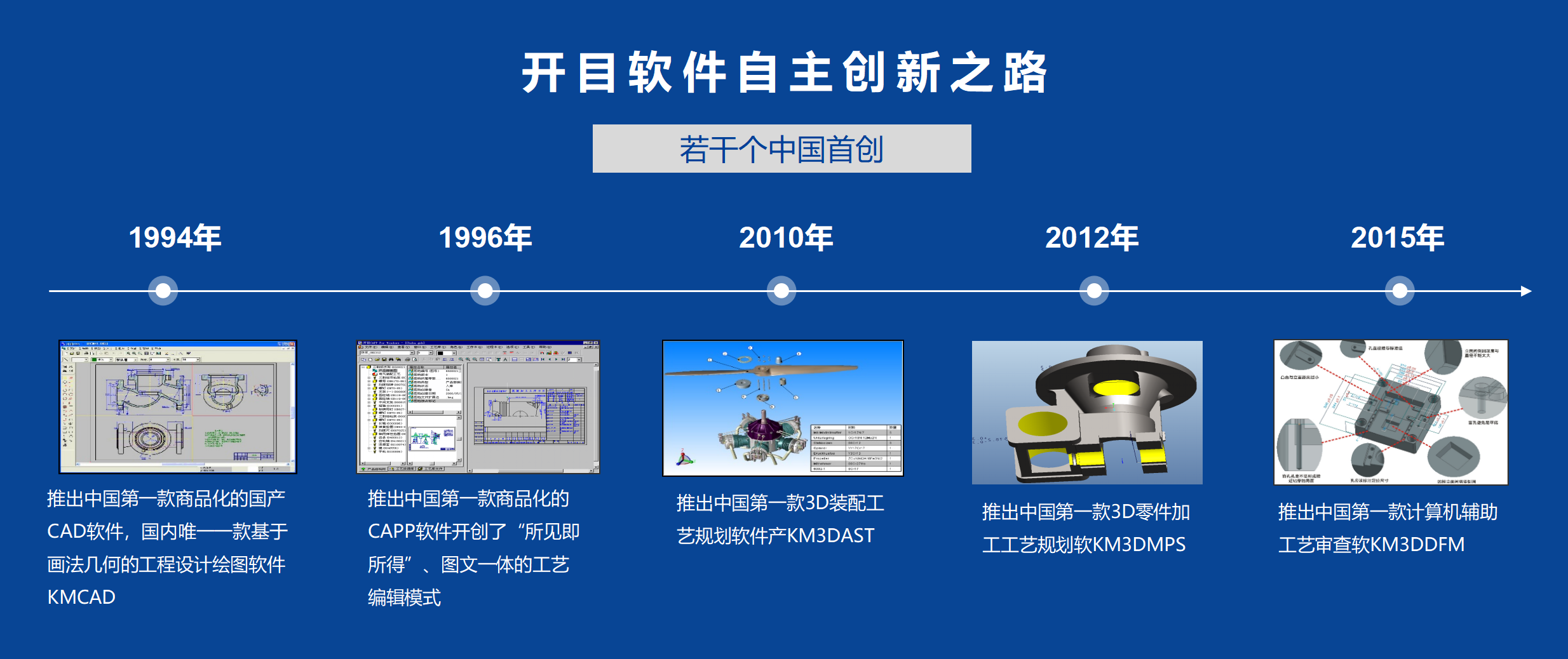 ? 在產(chǎn)品布局方面,開目軟件在創(chuàng)立之初只提供單一的CAD工具,而如今已擁有CAD、CAPP、3DCAPP、PLM、MPM、MES等二十多款完全自主知識(shí)產(chǎn)權(quán)的軟件產(chǎn)品,并打造了多個(gè)中國(guó)“首創(chuàng)”。其自主研發(fā)的KMCAPP、3DDFM、3DMPS、3DAST、KMMPM等一系列工藝軟件是中國(guó)數(shù)字化工藝的行業(yè)標(biāo)桿,且極具國(guó)際競(jìng)爭(zhēng)力。