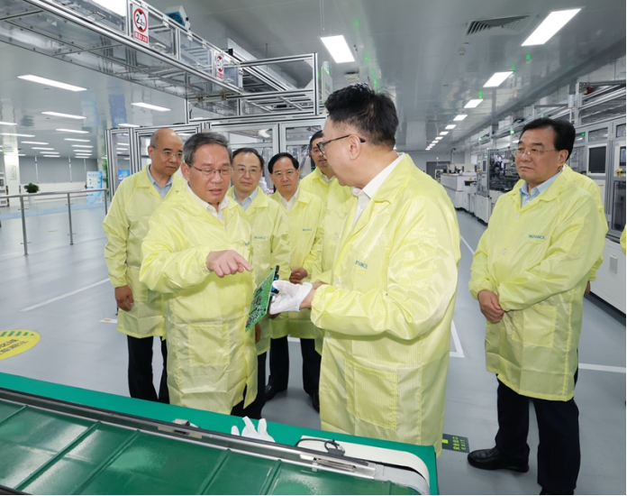 這是7月2日,李強在蘇州匯川技術有限公司參觀生產(chǎn)車間,了解企業(yè)研發(fā)生產(chǎn)等情況。新華社記者 王曄 攝