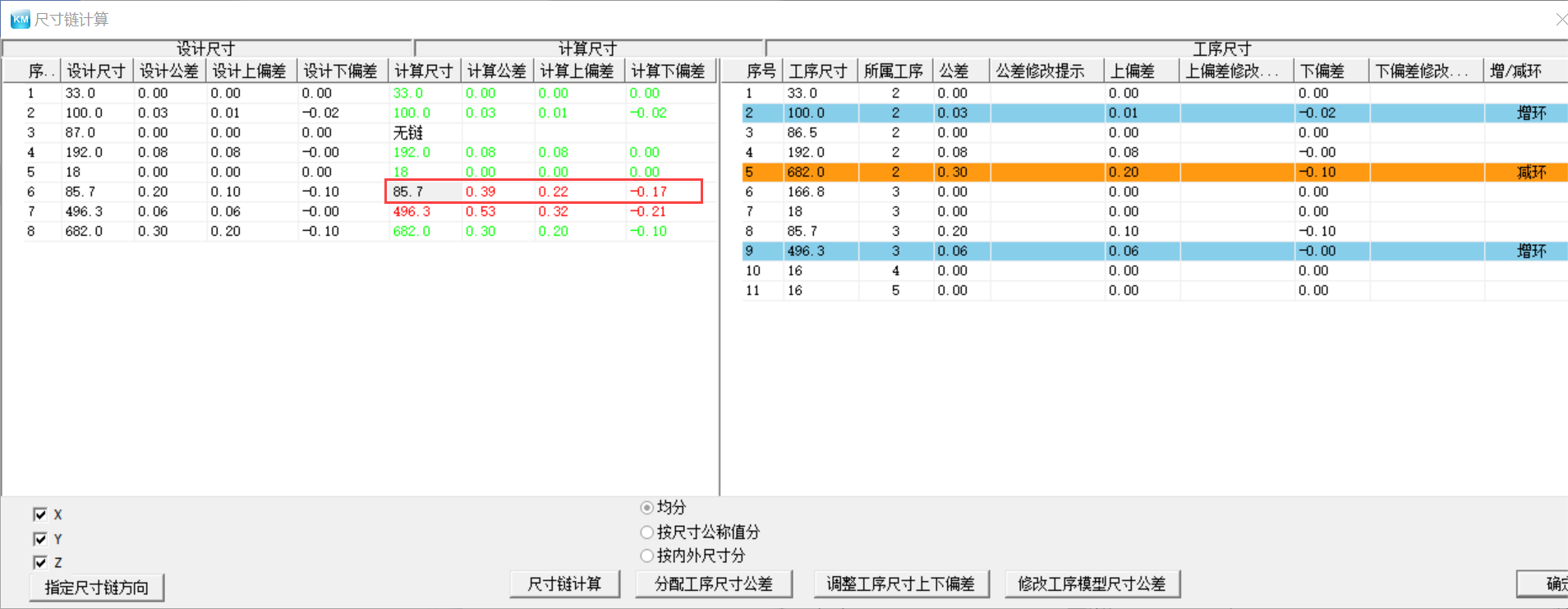 3DMPS工序尺寸鏈計(jì)算功能,可以自動(dòng)獲取尺寸鏈的組成環(huán),自動(dòng)識(shí)別工序模型的封閉環(huán)、增環(huán)、減環(huán)并進(jìn)行尺寸鏈解算,并通過(guò)計(jì)算結(jié)果推薦優(yōu)化建議。