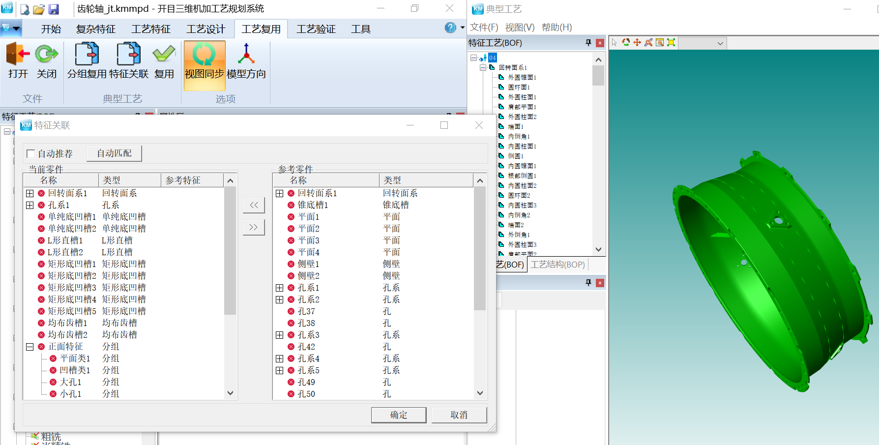 ? 優(yōu)化基于樣件的工藝復(fù)用。新增分組復(fù)用,支持以特征組為節(jié)點(diǎn)進(jìn)行工藝復(fù)用,同時繼承復(fù)用的工藝尺寸。