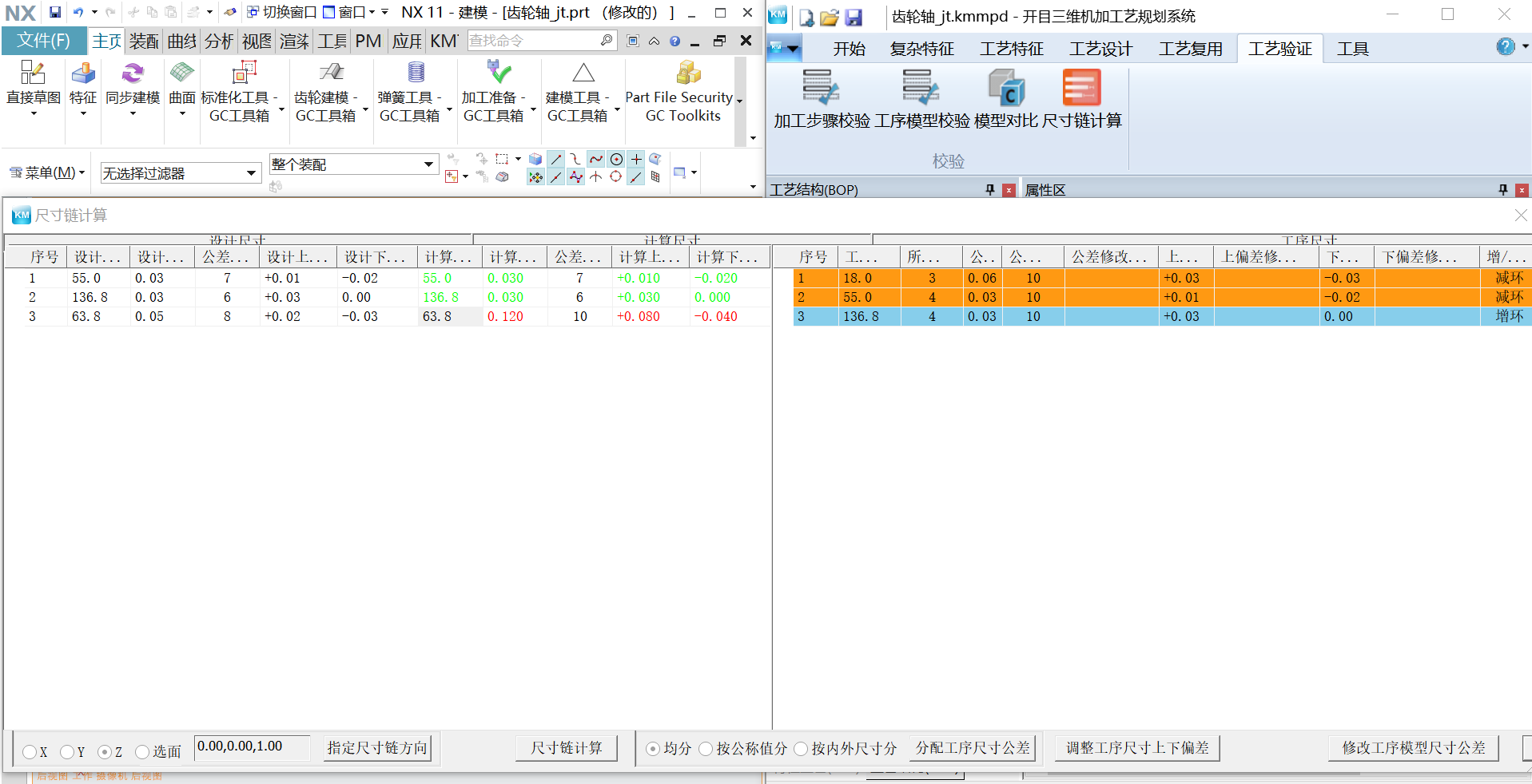 ? 基于PMI標(biāo)注的尺寸鏈計算。基于模型上標(biāo)注的PMI信息以及加工余量,對全工序模型進(jìn)行封閉環(huán)、增環(huán)、減環(huán)的定義,進(jìn)行尺寸鏈解算,構(gòu)建尺寸鏈圖??沈?yàn)證工序尺寸鏈,計算尺寸其公差是否符合設(shè)計尺寸公差要求,幫助驗(yàn)證、分析及避免工序尺寸公差錯誤,保證零件質(zhì)量。